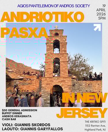 The New Agios Panteleimon of Andros Society, a New Jersey non for profit organization, is dedicated to preserving and promoting the Greek language and culture, as well as the rich cultural heritage of Andros, Greece, among individuals of all ages living far away from the motherland.